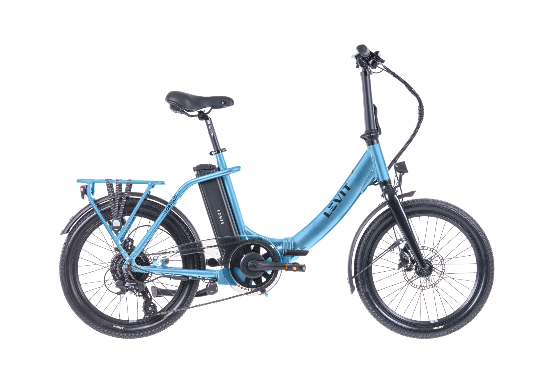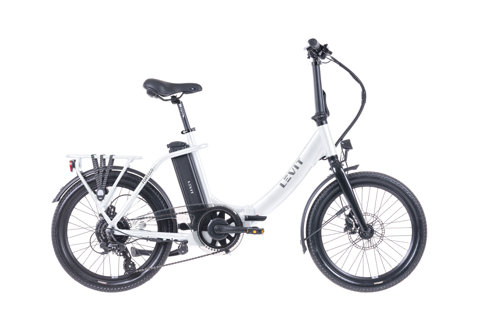 Průměr kol: 20" Rám: Alloy 6061 Velikost rámu: UNI Převody: 1x8 Motor: Levit HD Baterie: Levit ST 630 Wh (17.5 Ah) Displej: Levit LCD Vidlice: RST Porter (60 mm) Převodník: Wheeltop (170 mm, 42 z.) Přehazovačka: Shimano TX800 Řazení: Shimano RS458 Kazeta: Shimano HG200 (11 - 36 z.) Řetěz: KMC HV500 Brzdy: Shimano MT200 (160 mm kotouč) Náboj přední: Formula DC-20LW Náboj zadní: Levit HD Ráfky: Remerx Dragon Line 719 (406 x 19 mm) Pláště: Mitas Cheetah 20 x 2,1" (54 - 406) Pedály: Alloy, skládací Gripy: Spec Řidítka: Spec 25,4 x 640 mm Představec: Spec folding Hlavové složení: Spec Sedlovka: Spec 27,2 x 350 mm Sedlo: Selle Royal Hertz